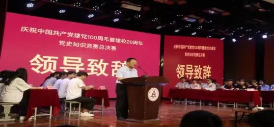 为庆祝中国共产党成立100周年暨建校20周年,6月12日下午,周口职业技术学院在学前艺术演播厅举办了“永远跟党走 奋斗新征程”党史知识竞赛总决赛,校党委副书记赵振然、副校长李明臣及二级教学院部领导及思政部全体教师、学生代表200多人一起观看了现场比赛,2000余名师生同步收看现场直播。