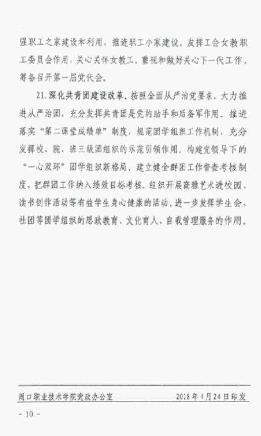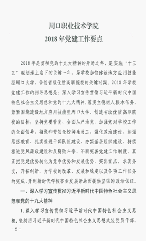 《周口职业技术学院2018年党建工作要点》的通知