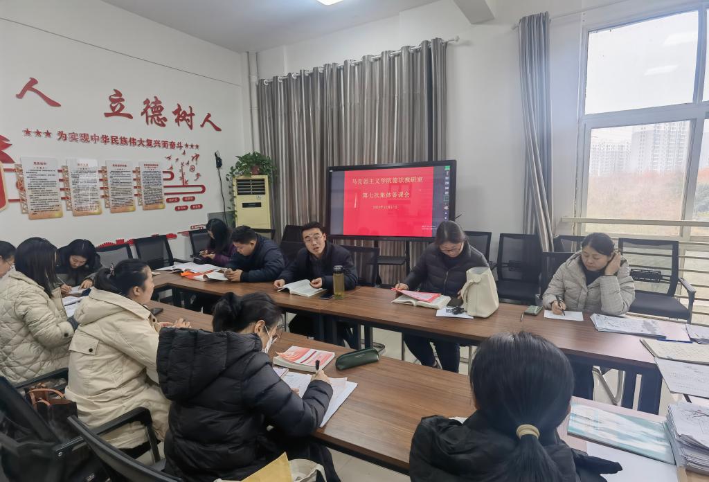 12月17日,思想道德与法治教研室第七次集体备课会在taptap点点官方网站3353集体备课室举行。备课会由taptap点点官方网站副院长范文婷主持,全体思想道德与法治课教师参与了此次活动。