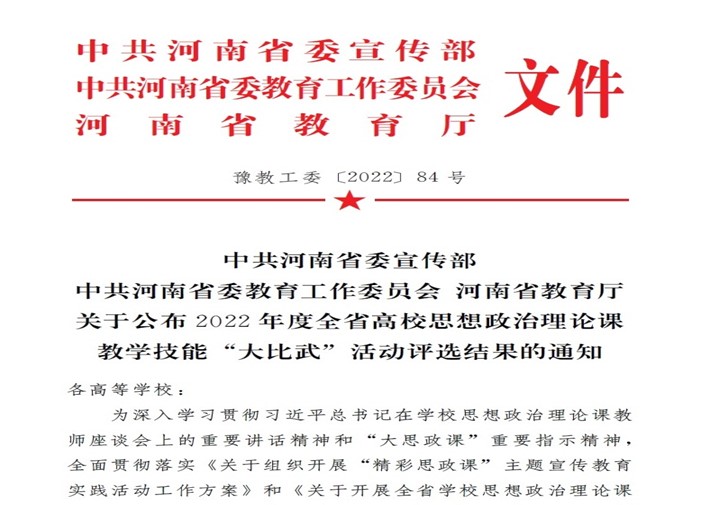 近日,河南省教育厅公布了2022年全省高校思想政治理论课教学技能“大比武”活动评选结果:taptap点点官方网站3名思政课教师在河南省思政课“大比武”活动中喜得佳绩,获一等奖5个、三等奖1个,实现重大突破。
